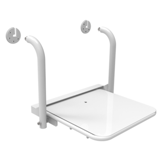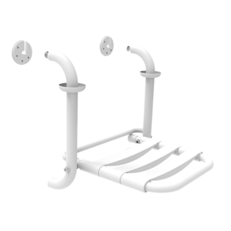 Dos modelos de asientos de ducha abatibles y extraíbles con asiento clásico anatómico o con listones, fabricados en acero inoxidable 304 y recubiertos con material resistente al desgaste con propiedades antibacterianas de sales de plata Bio-goman.