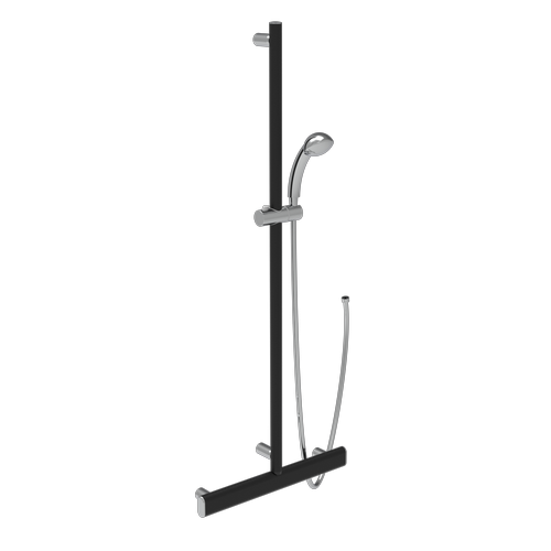 Home » Asideros para ducha con soporte » Asideros para ducha con soporte - Serie Shade » Asa en t con porta ducha, ducha y flexible serie shade cm.50×120 negro mate/cromo