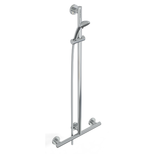 Barra en t con soporte ducha, vertical en libera posición completa de ducha serie leonardo deluxe inox cromo