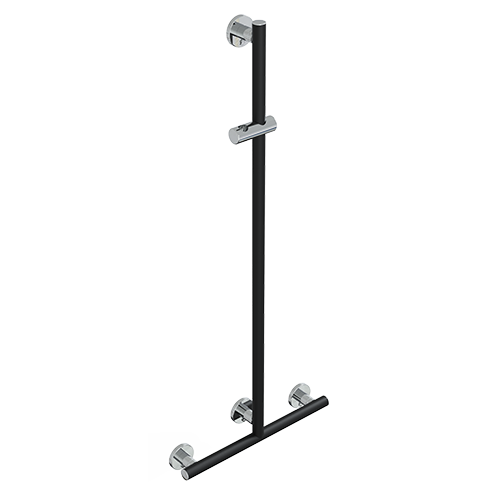 Barra en t con soporte ducha, vertical en libera posición serie leonardo deluxe inox mate nigro/cromo
