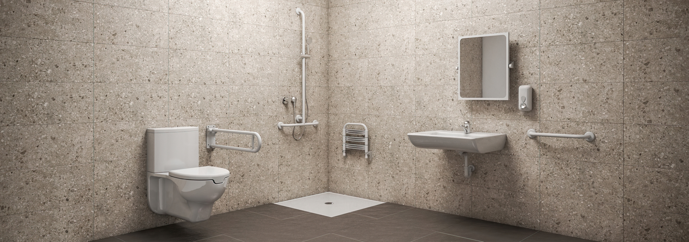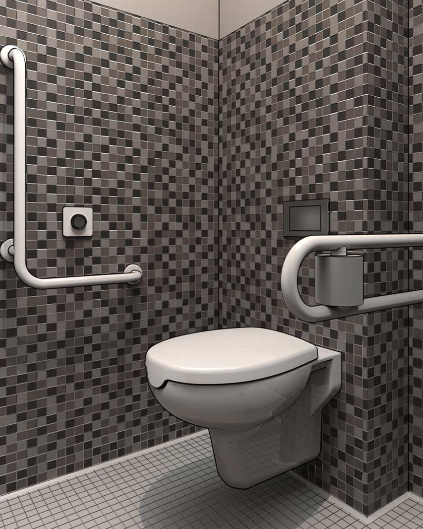 Junto con cada equipo higiénico debe instalarse unos pasamanos o asidero adecuado para permitir el traslado y el uso, incluso por parte de personas con capacidad motriz reducida o nula.