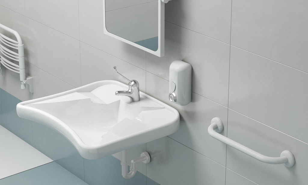 El lavabo debe ser de tipo ménsula, con borde delantero a 80/85 cm del suelo, con espacio libre debajo de al menos 70/75 cm. El espacio de acercamiento debe ser de 80 cm, el grifo debe ser de “tipo palanca” y el espejo debe poder ser utilizado por todos (niños o personas en sillas de rueda), por lo tanto, debe estar bajo, cerca del borde, o debe ser reclinable.