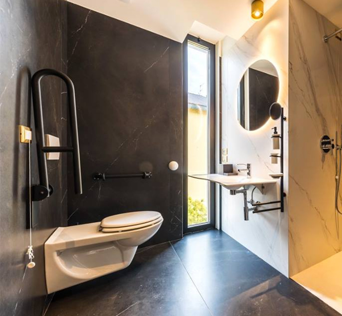 Objetivo:Crear un entorno de baño de hotel totalmente accesible y compatible sin comprometer la estética.