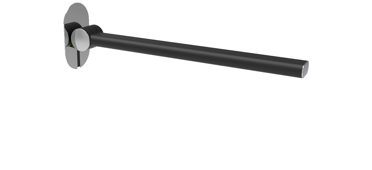 Gracias a la estructura disponible bajo pedido en toda la gama de colores RAL y acabados cromados, la barra Shade abandona el aspecto ortopédico y forzosamente hospitalario típico de las clásicas barras abatibles, integrándose hábilmente en cualquier ambiente de baño como elemento de decoración minimalista y contemporáneo.