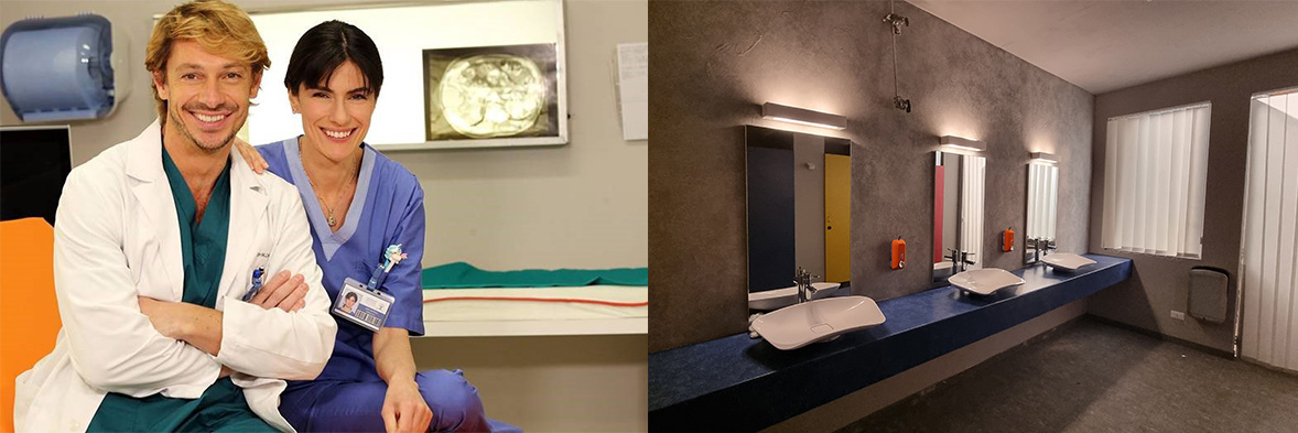 También este año, dado el éxito de la edición anterior, se emite “Lea, nuestros hijos 2”, y la producción ha vuelto a elegir a Goman como socio para la realización de un baño en la sala donde se grabaron algunas tomas. Particularmente impresionante es el lavabo Prime en una composición especial de 3 elementos, un producto absolutamente innovador en el mundo de la decoración de baño contemporáneo, capaz de combinar las necesidades de accesibilidad con las del diseño de interiores, una característica esencial en hospitales y lugares de hostelería donde el cumplimiento de la normativa no es opcional, y al mismo tiempo, se debe conferir placer estético al ambiente del baño, haciéndolo menos “clínico”.